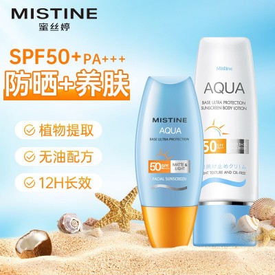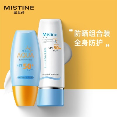 [口碑组合]Mistine/蜜丝婷自营水润清透防晒霜套装40ml+水润多效防护防晒霜70ml防紫外线男女学生便携