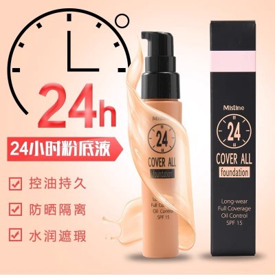 Mistine泰国24小时粉底液 隔离霜水润遮瑕提亮肤色控油持久不脱妆学生粉底液 25ml F1象牙白
