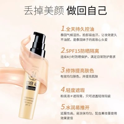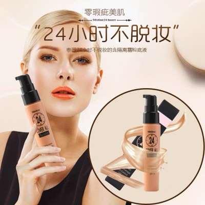 Mistine泰国24小时粉底液 隔离霜水润遮瑕提亮肤色控油持久不脱妆学生粉底液 25ml F1象牙白